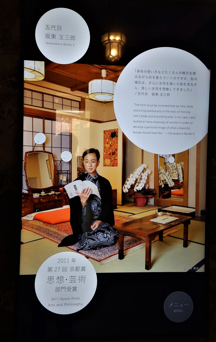 ここは稲盛財団の美術館 財団関連の京都賞受賞者 坂東玉三郎の写真が